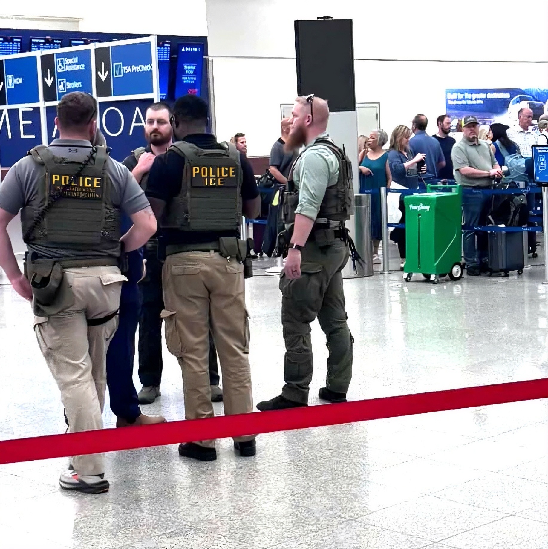 Des agents de l’Immigration and Customs Enforcement (ICE) ont été déployés dans treize grands aéroports américains, mais leur présence n’a pas contribué à alléger les files d’attente massives de la TSA. Le déploiement, apparemment destiné à libérer le personnel de la TSA pour les tâches de contrôle, semble largement symbolique, les agents de l’ICE restant pour la plupart en attente plutôt que de soulager activement les agents de contrôle surchargés.
